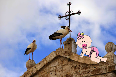 Foto de María a la espera de que se decidan alguna cigüeña a llevarla con sus padres.